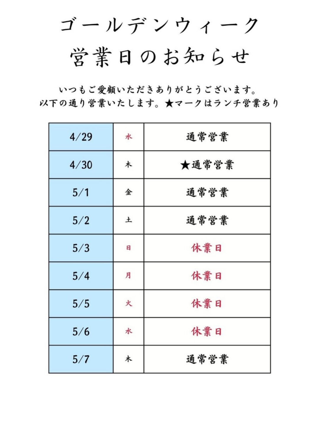 29日は祝日ですが営業いたします。